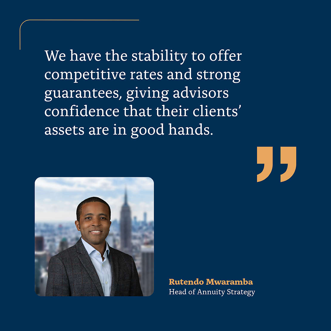 It comes down to three things: financial strength, a diverse product lineup, and unwavering support. We have the stability to offer competitive rates and strong guarantees, giving advisors confidence that their clients’ assets are in good hands. But it’s more than just products—we provide top-tier service, digital tools, and easy-to-understand educational resources that help advisors simplify the conversation and make annuities a natural part of financial strategies.